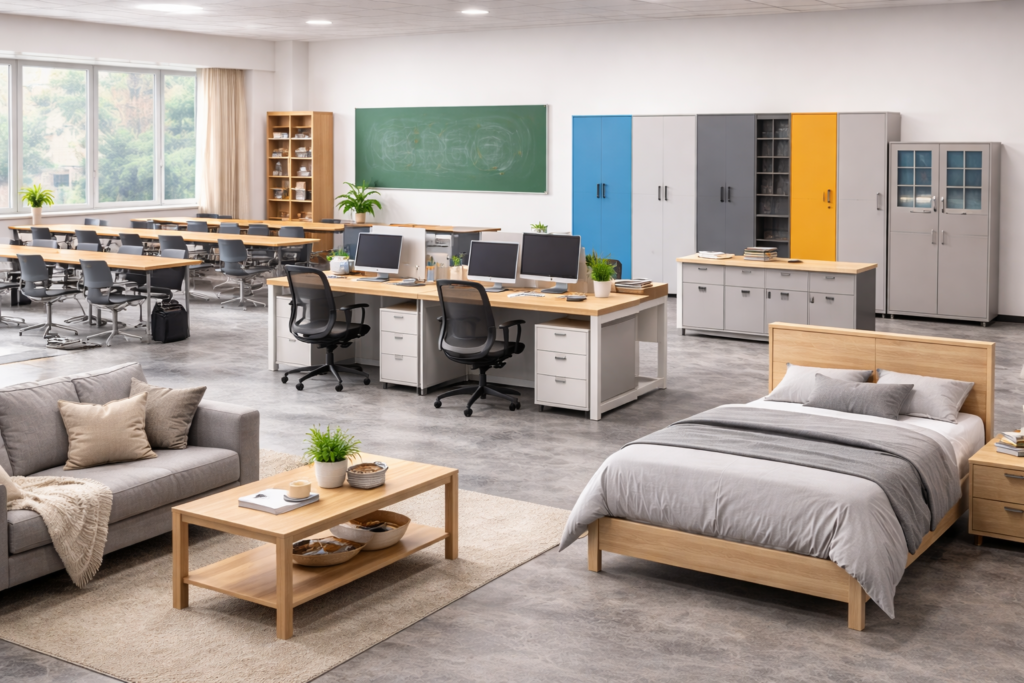 We design safe, durable, and ergonomic school furniture that supports comfortable learning environments. Our range includes desks, benches, storage units, and classroom solutions, built with strong materials and child-friendly designs for long-lasting use.